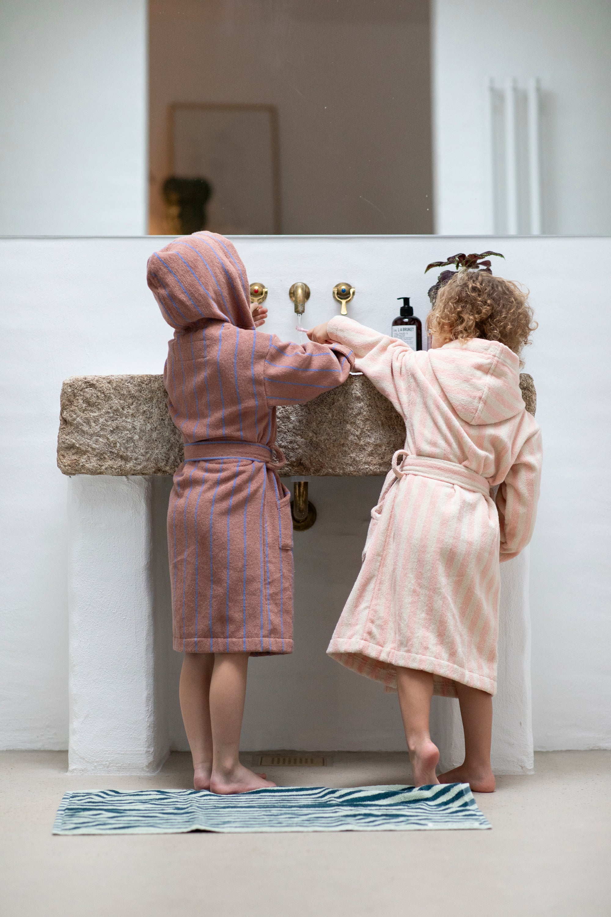 Naram Bathrobe, camel & ultramarine